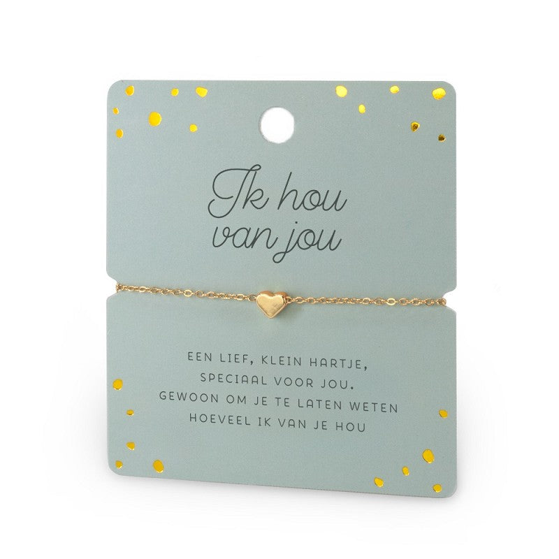Een gebaar recht uit het hart. Een klein teken van aandacht. Een cadeautje vol liefde. Iets om bij je te dragen. Iets waardoor je weet dat er van je gehouden wordt, dat er aan je gedacht wordt. Cadeautjes hoeven niet altijd groots en meeslepend te zijn. Klein en oprecht. Dat is soms ook genoeg. Als het de lading maar dekt van het gevoel.