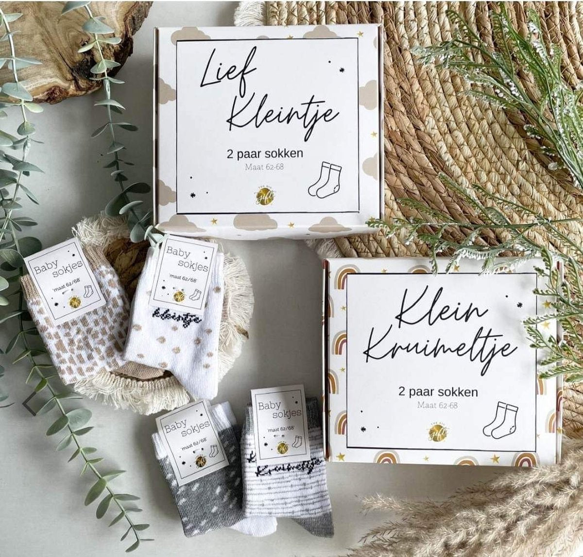 Kortom, als je op zoek bent naar een perfect kraamcadeau voor een kleintje dat op komst is of al geboren is, dan is dit doosje Baby Sokjes – Klein Kruimeltje met 2 paar sokken een geweldige keuze. Het is niet alleen praktisch en duurzaam, maar ook nog eens schattig en stijlvol! Bestel het vandaag nog en verras de nieuwe ouders met dit geweldige cadeau.