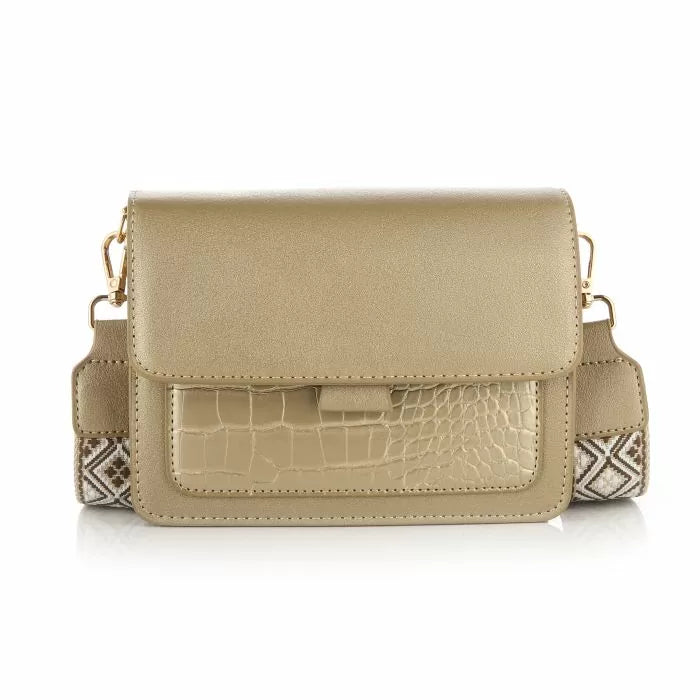 Basic Bag 725 | Croco | Goud | brede schouderband