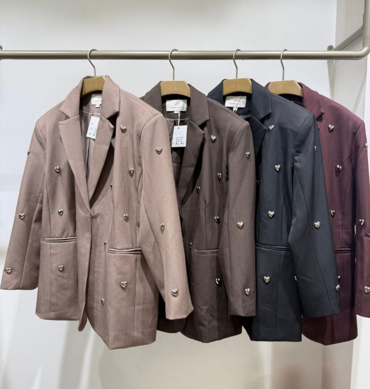 Als je op zoek bent naar écht iets speciaals, dan is deze blazer dé perfecte keus voor jou! Gemaakt van hele mooie, zware kwaliteit. De metalen hartjes op de blazer maken hem een echte eyecatcher! Het zijn rechte, oversized modellen. Super stoer en classy tegelijk!