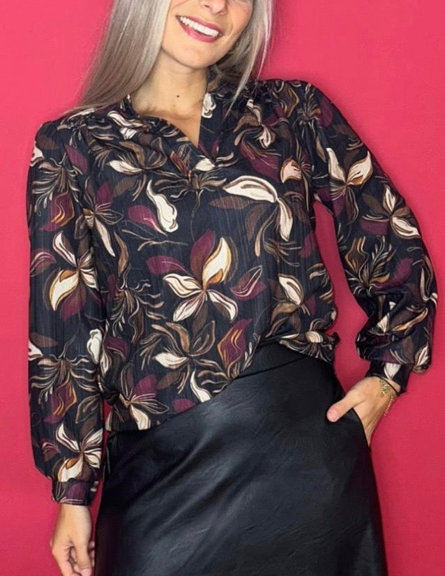 Wat een heerlijke blouses zijn dit weer van Elja! Door de mooie kleuren in de print met heel veel kleuren te combineren! Draag hem bijvoorbeeld onder een gilet, vest of blazer om jouw outfit af te maken!