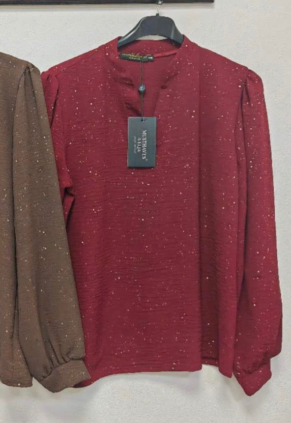 Oh wat zijn ze prachtig! Met deze blouse straal jij nog net dat beetje extra! De kleur is prachtig, de stof is heerlijk luchtig en de glitters maken hem extra shiny! Niet alleen leuk met de feestdagen maar ook voor een feestje, als je uit eten gaat of gewoon houd van wat extra's!