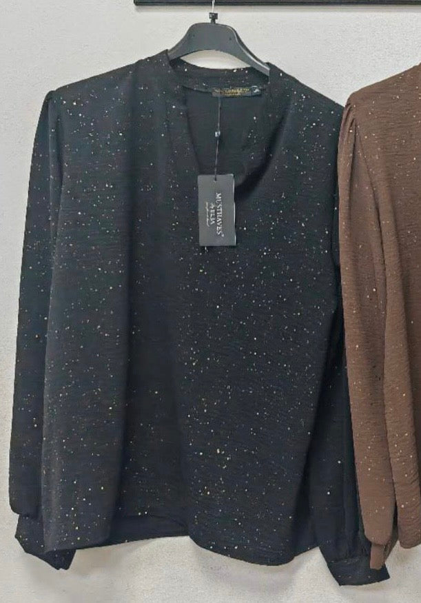 Oh wat zijn ze prachtig! Met deze blouse straal jij nog net dat beetje extra! De kleur is prachtig, de stof is heerlijk luchtig en de glitters maken hem extra shiny! Niet alleen leuk met de feestdagen maar ook voor een feestje, als je uit eten gaat of gewoon houd van wat extra's!