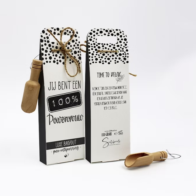 Met dit originele cadeau kun jij jouw juf, een vriendin, je moeder, je buurvrouw of iemand anders die je lief vindt bedanken. Onze luxe badzout is heerlijk voor een relax momentje met pure ontspanning. Alle verpakkingen zijn voor elke gelegenheid ontworpen met lieve, leuke en warme teksten. Daarnaast is het mooi gepresenteerd in een hippe zwarte witte verpakking. Het zakje badzout bestaat uit een groffe korrel met een frisse verrassende geur. Eén lepel badzout is al genoeg voor een lekker voetenbadje. Wil je heerlijk relaxen in bad, gooi dan het hele zakje badzout in bad.