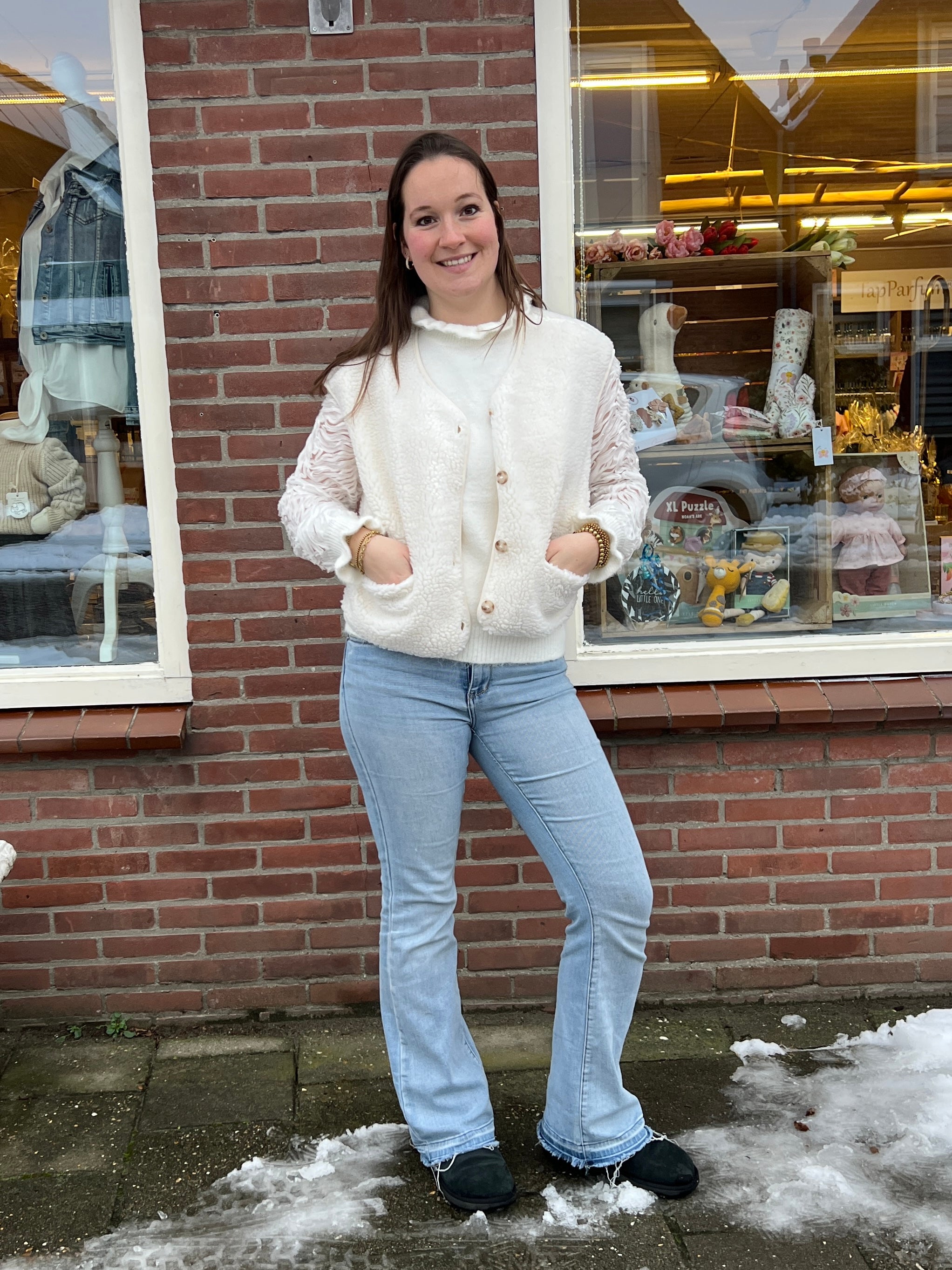 Ze blijven leuk; de bouclé gilets of beter bekend; de teddy giletjes! Je kunt ze eindeloos combineren met een leuk blousje, jurkje, truitje of top. Ze geven je lekkere warmte, zijn lekker zacht én zijn super hip! Dit gilet heeft leuke knoopjes, en zakjes.