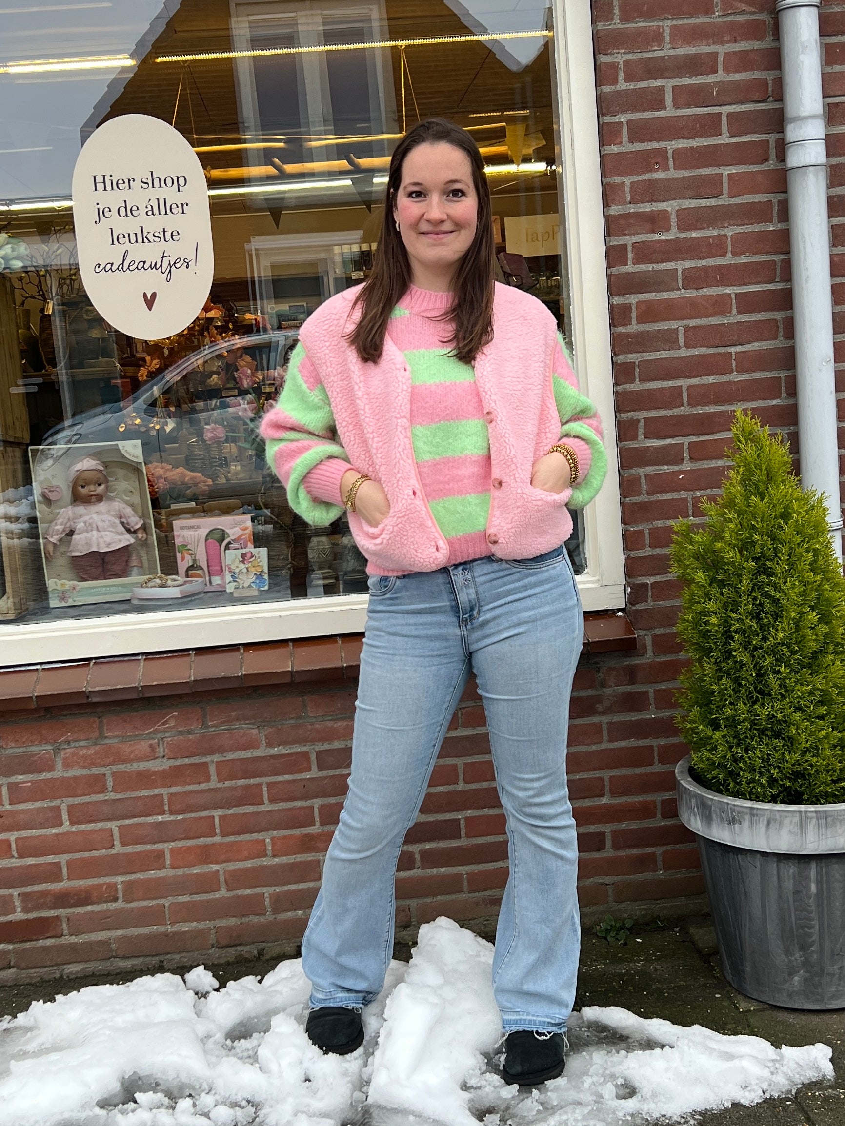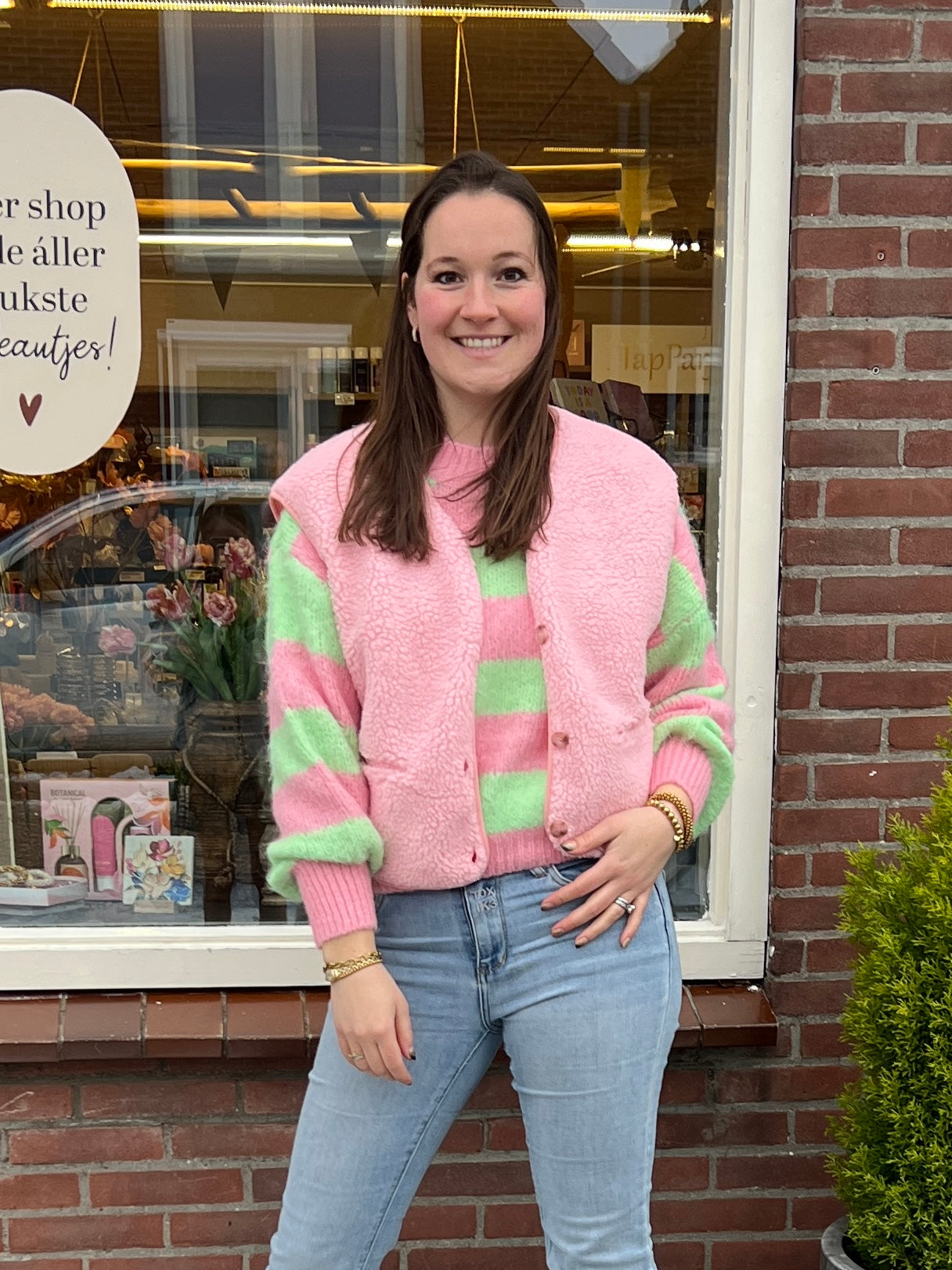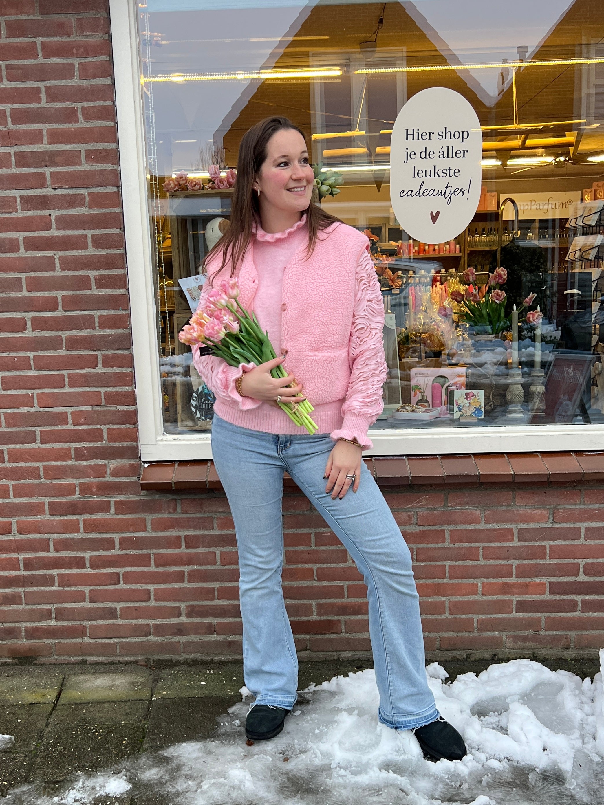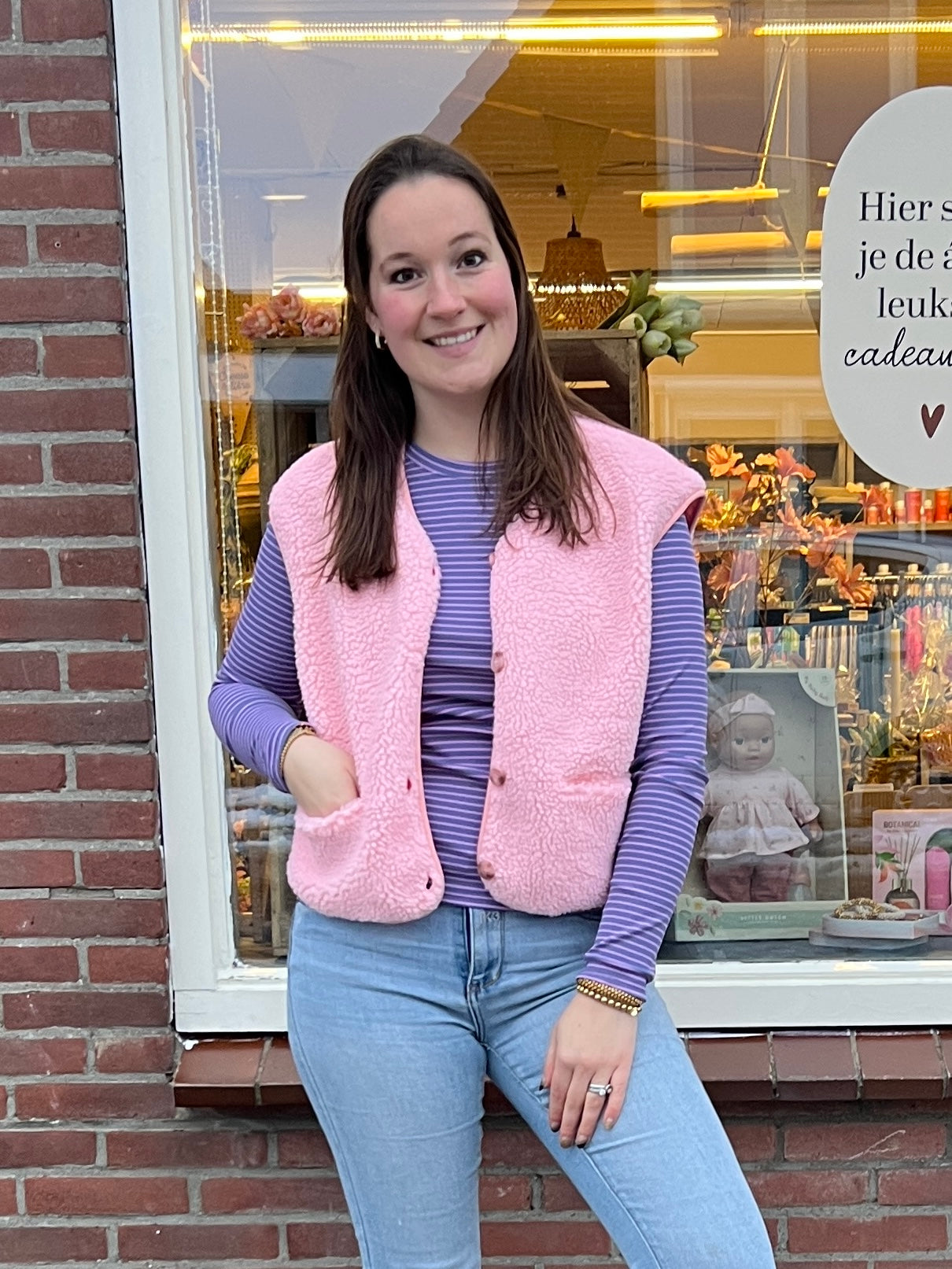 Ze blijven leuk; de bouclé gilets of beter bekend; de teddy giletjes! Je kunt ze eindeloos combineren met een leuk blousje, jurkje, truitje of top. Ze geven je lekkere warmte, zijn lekker zacht én zijn super hip! Dit gilet heeft leuke knoopjes, en zakjes.