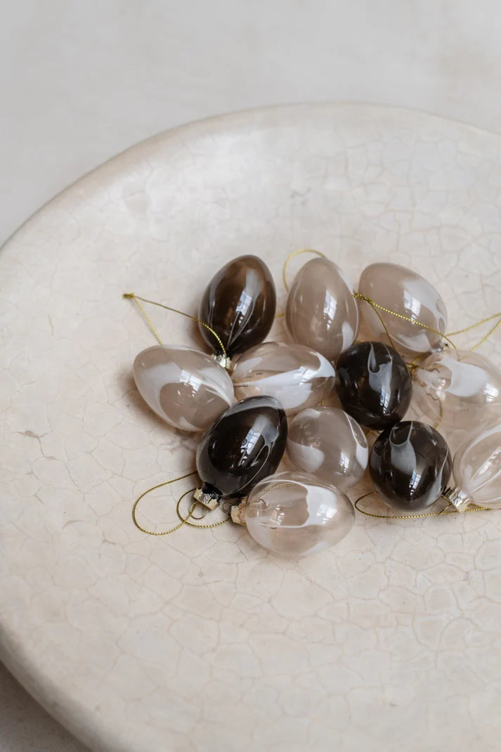 Ornament Egg Wabi van 6 glazen hangers met leuke geschilderde details.