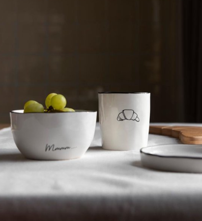 Maak je eetmomenten nog gezelliger met de Gusta Kom Enjoyables Set van 2! Deze veelzijdige schaaltjes zijn perfect voor het serveren van je favoriete kwark, yoghurt, soep en nog veel meer. De set bevat twee stijlvolle kommen, elk voorzien van een hip croissantmotief, wat een speelse en moderne touch aan je tafelsetting geeft.