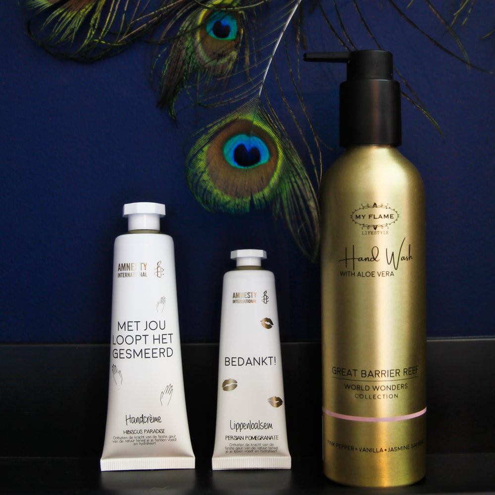 My Flame Lifestyle heeft de eer gehad om deze handcrème te ontwerpen in samenwerking met Amnesty International. Steun het goede doel met deze handcrème! My Flame Lifestyle doneert 10% van haar omzet aan Amnesty International.
