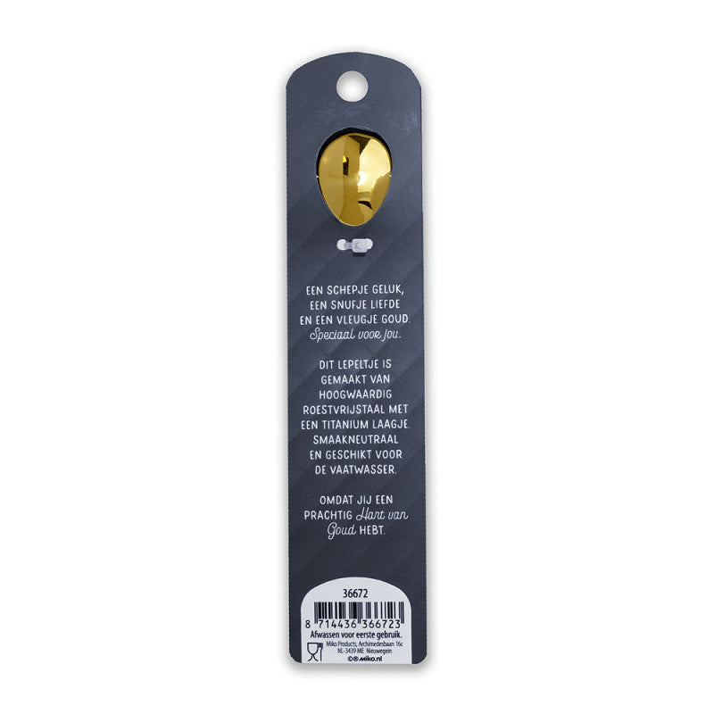 Weer een nieuwe topper in ons cadeau-assortiment; deze mooie gouden gegraveerde lepeltjes! Verras iemand die jou lief is met dit unieke cadeau. Leuk om te combineren met een thee-/koffiepakketje of een leuke mok! De lepeltjes zijn vaatwasbestendig en gemaakt van roestvrijstaal. Wil je jouw lepeltje in een extra luxe verpakking cadeau geven? Bestel dan de bijpassende cadeauzakjes van 2,99 erbij!