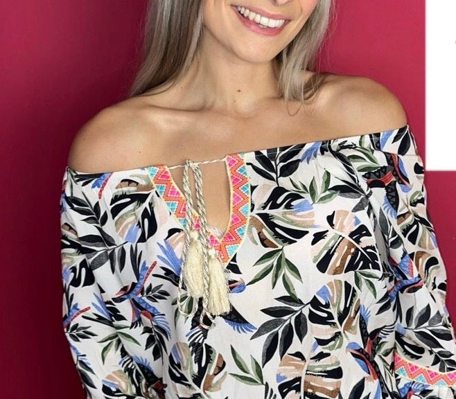 Wij worden altijd heel blij van deze Ibiza blouses! Waarom? Omdat ze niet alleen geweldige kleuren hebben, ook omdat er mooie details in zijn verwerkt én omdat ze heel erg fijn dragen. De blouse is lekker luchtig en ook leuk om off-shoulder te dragen. Deze topper van Musthaves by Elja mag niet ontbreken in jouw kast!