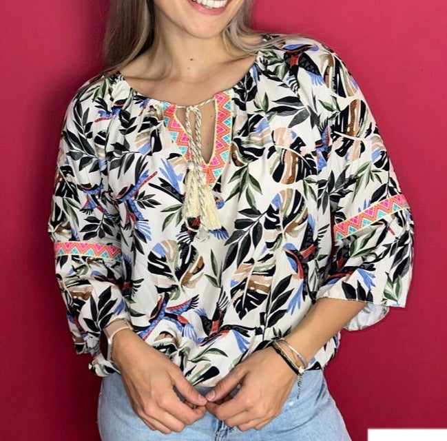 Ibiza blouse | Leaves | Wit
