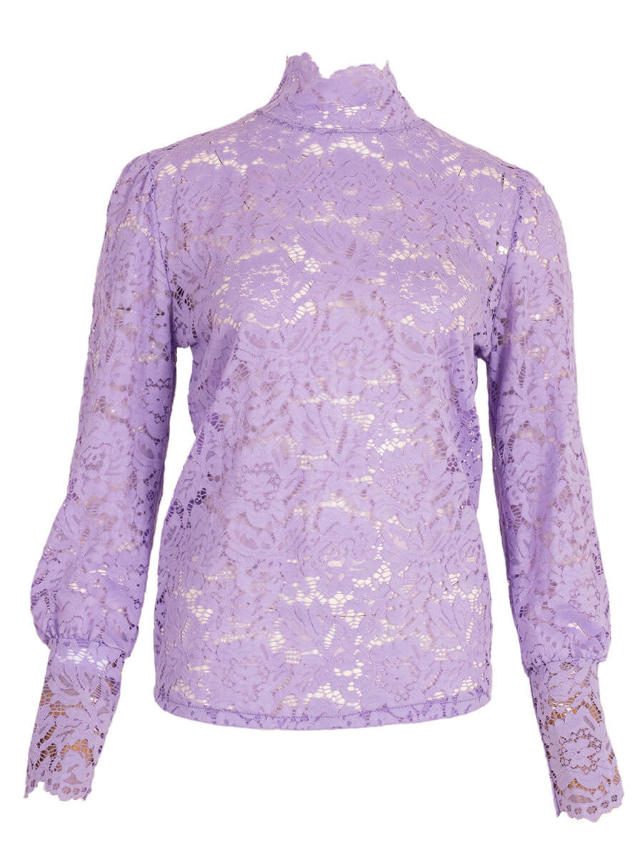 Deze super gave kanten tops zijn niet alleen erg trendy, deze zijn ook nog eens leuk om jouw outfit net dat beetje extra te geven. Erg leuk te combineren met onze gilets of blazers, maar ook leuk te stijlen onder een trui. De top is gemaakt van een doorschijnende kanten stof en heeft een vrouwelijke uitstraling. De top is voorzien van lange pofmouwen en een hooggesloten halslijn met één knoopje aan de achterkant, waardoor hij makkelijk aan en uit te trekken is.