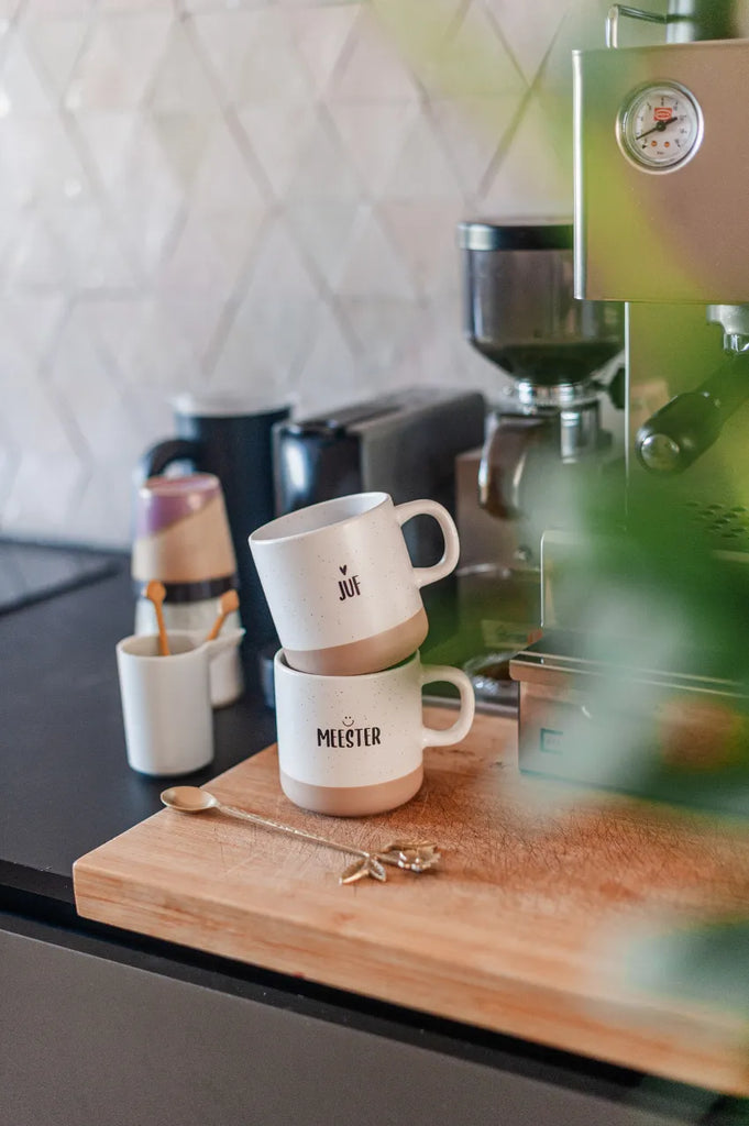 Een bedankje voor de liefste juf? Deze keramische mok met opdruk ‘Juf’ is hét perfecte cadeau voor juffendag, het einde van het schooljaar of gewoon zomaar. Een vrolijk ontwerp dat waardering uitstraalt bij elk kopje thee of koffie.