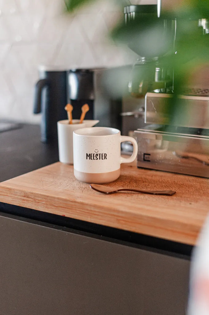 Zeg “dank je wel” op een originele manier met deze keramische mok met de opdruk ‘Meester’. Ideaal als cadeau voor het einde van het schooljaar, meesterdag of gewoon als blijk van waardering. Perfect voor op het bureau.