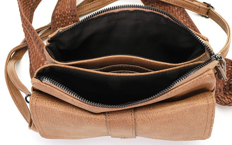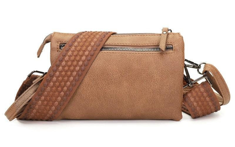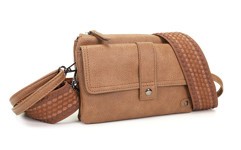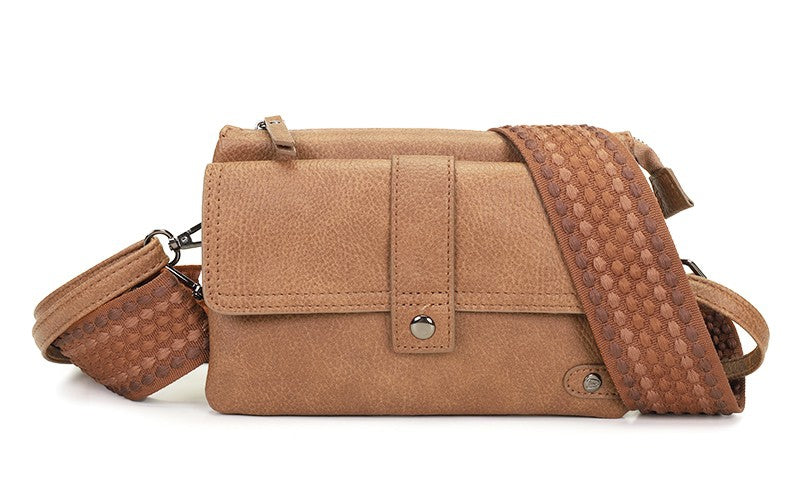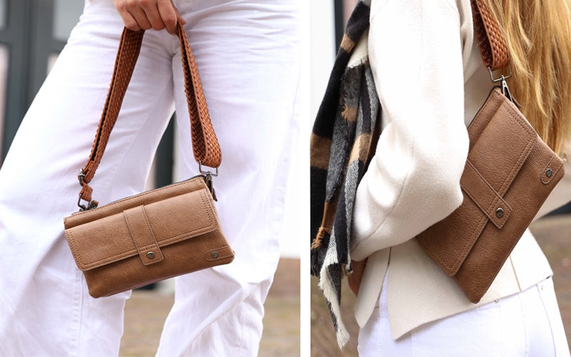 Stijlvolle schoudertas crossbody Naarden van I'm Dutch. Deze handige damestas heeft twee ruime vakken met rits. Tussen deze twee vakken zit een fijn extra vak met met insteekvakjes om diverse pasjes veilig in op te bergen. Het royale voorvak wordt afgesloten met een magneetsluiting en biedt voldoende ruimte voor een iPhone of Samsung telefoon. De damestas kan gebruikt worden als schoudertas of crossbody tasje. De Naarden wordt geleverd met twee verstelbare schouderbanden. Een dunne effen variant en een brede geweven schouderband.