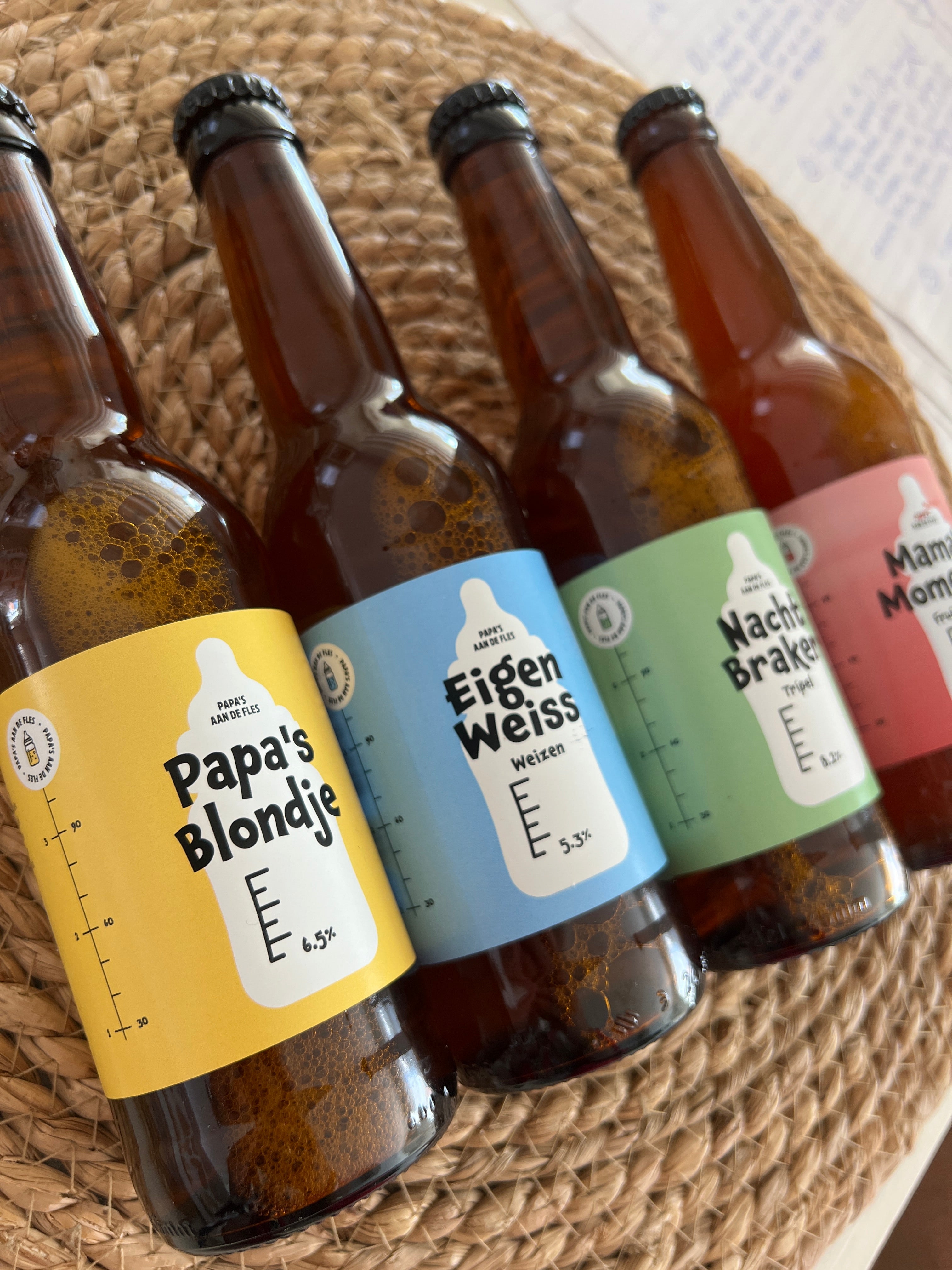 Hoé leuk zijn deze biertjes? Bier geven als kraamcadeau zou ik niet zomaar adviseren. Maar sinds deze mannen hun ‘Papa’s aan de fles’ biertjes op de markt hebben gebracht, doe ik niet anders meer! Want zeg nu zelf; ook de vaders mogen wel verwend worden toch? Ook leuk om te geven voor vaderdag, aan een aanstaande papa of als verjaardagscadeautje. Mix ze met een van de andere bieren uit de collectie en we maken er een leuk pakketje van!
