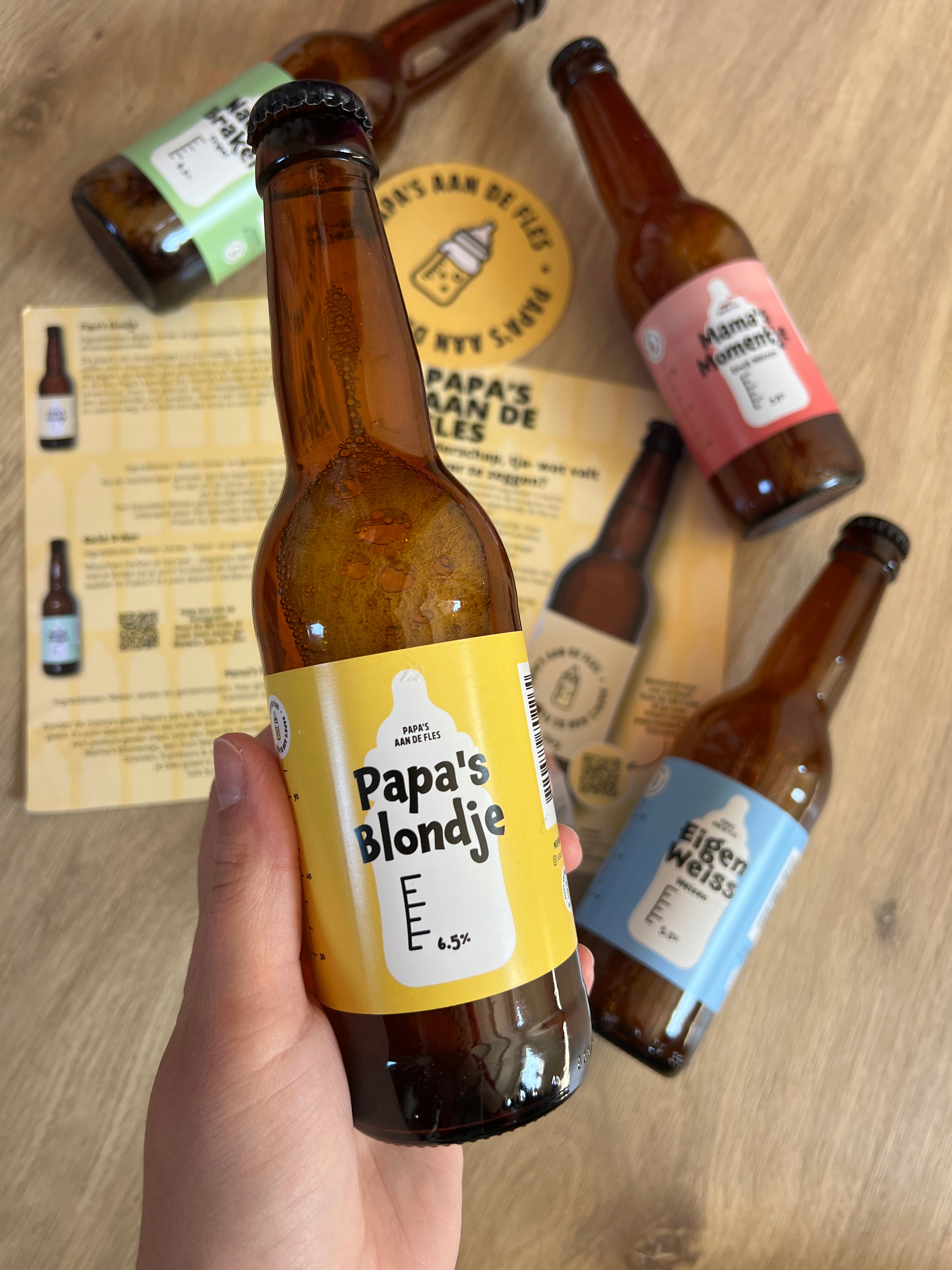 Hoé leuk zijn deze biertjes? Bier geven als kraamcadeau zou ik niet zomaar adviseren. Maar sinds deze mannen hun ‘Papa’s aan de fles’ biertjes op de markt hebben gebracht, doe ik niet anders meer! Want zeg nu zelf; ook de vaders mogen wel verwend worden toch? Ook leuk om te geven voor vaderdag, aan een aanstaande papa of als verjaardagscadeautje. Mix ze met een van de andere bieren uit de collectie en we maken er een leuk pakketje van!