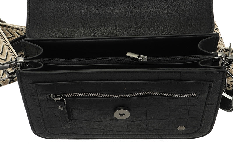 Geef je outfit direct een luxe uitstraling met de Skala. Deze ruime crossbody met trendy croco-print pas je dankzij de twee meegeleverde banden moeiteloos aan elke gelegenheid aan.