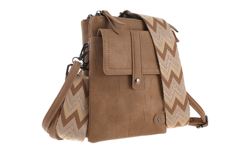 Telefoon-/ schoudertasje | Tyler | Licht camel | met extra schouderband