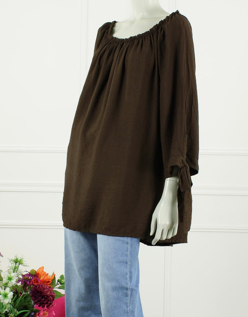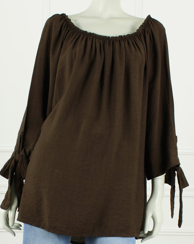 Altijd handig; en basis top in je kast die eindeloos te combineren is! Deze blouse is stijlvol en tijdloos door de leuke linten die je kunt strikken. Hij draagt heerlijk en is gemaakt van fijne viscose stof. Ook leuk off-shoulder te dragen door het elastiek aan de bovenkant.