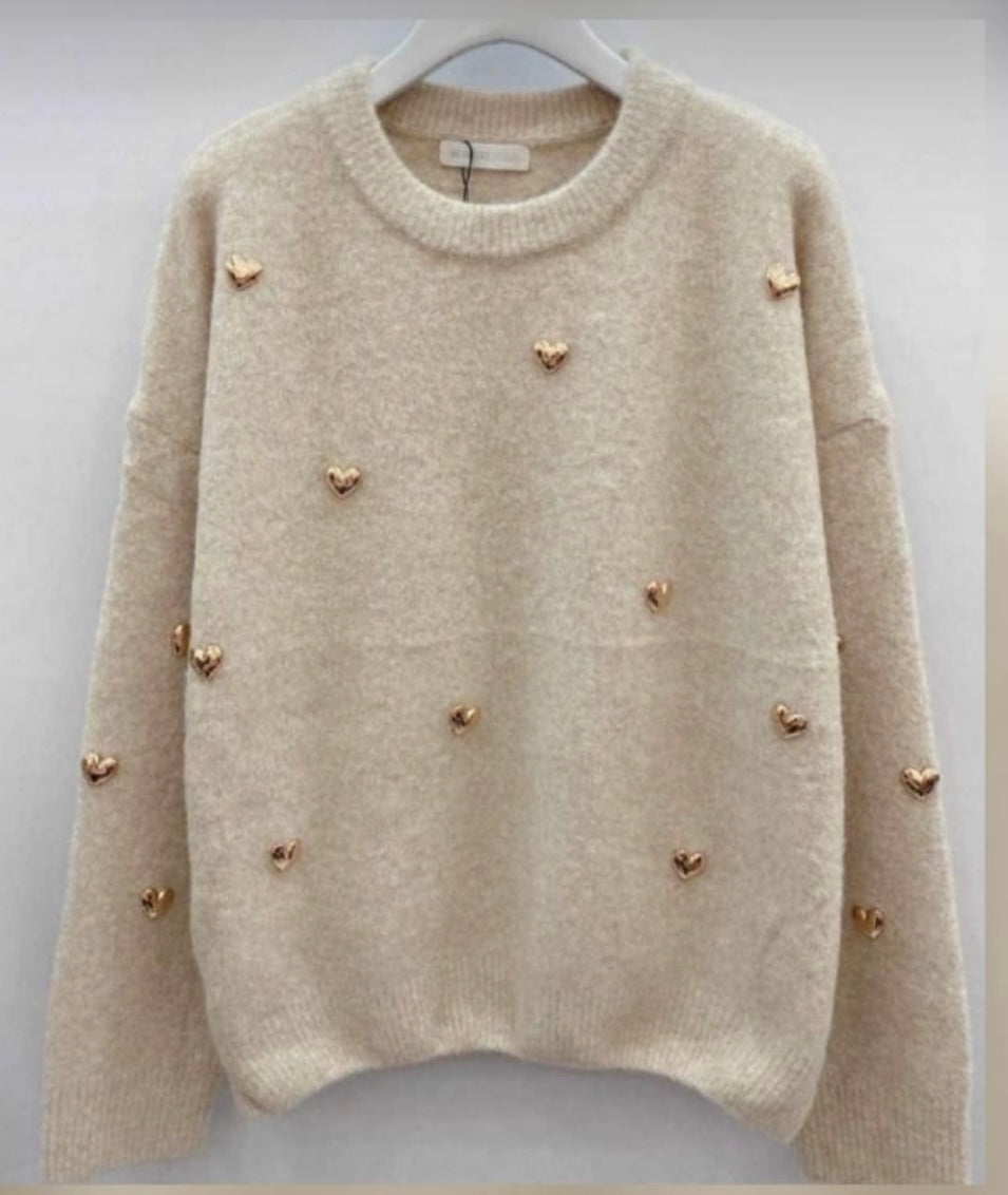 Trui | Metalen hartjes | Ecru