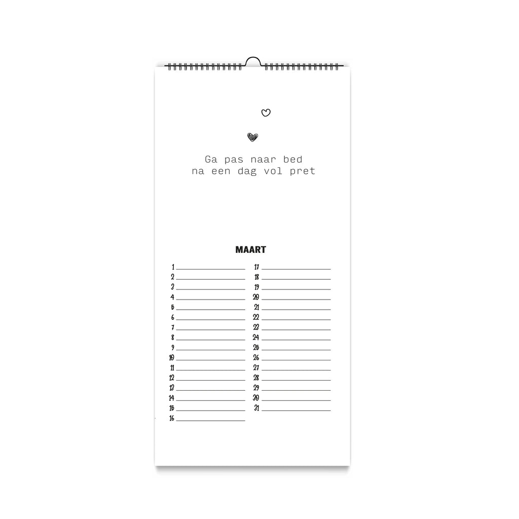 Deze kalender heeft 13 pagina's, op iedere pagina staat een echte winkeltjevananne.nl spreuk of tekst.
