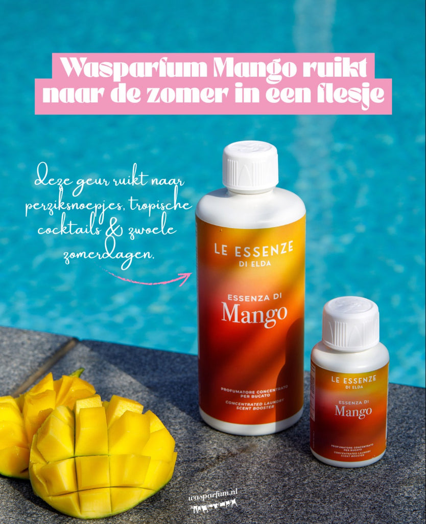 Ze smaakte zoet, zout, zuur. Ze smaakte naar de zomer!’ Het is niet alleen een echte zomerhit die je niet meer uit je hoofd krijgt, maar ook de perfecte geuromschrijving voor de wasparfum Mango.