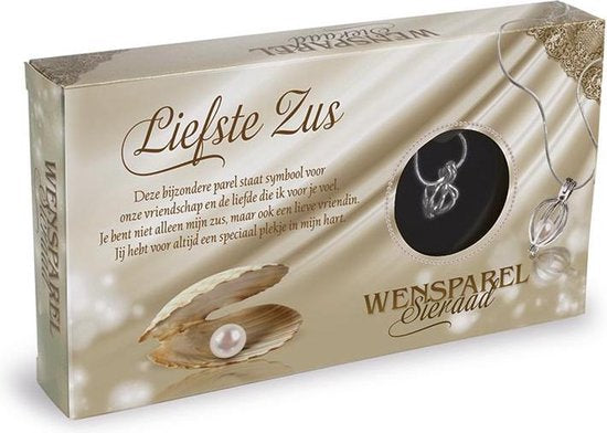 We hebben nu wel een heel bijzonder cadeau in onze collectie; een Wensparel. In dit mooie cadeaudoosje zit een zilveren ketting en een oester waar een parel in zit met een mooie betekenis.