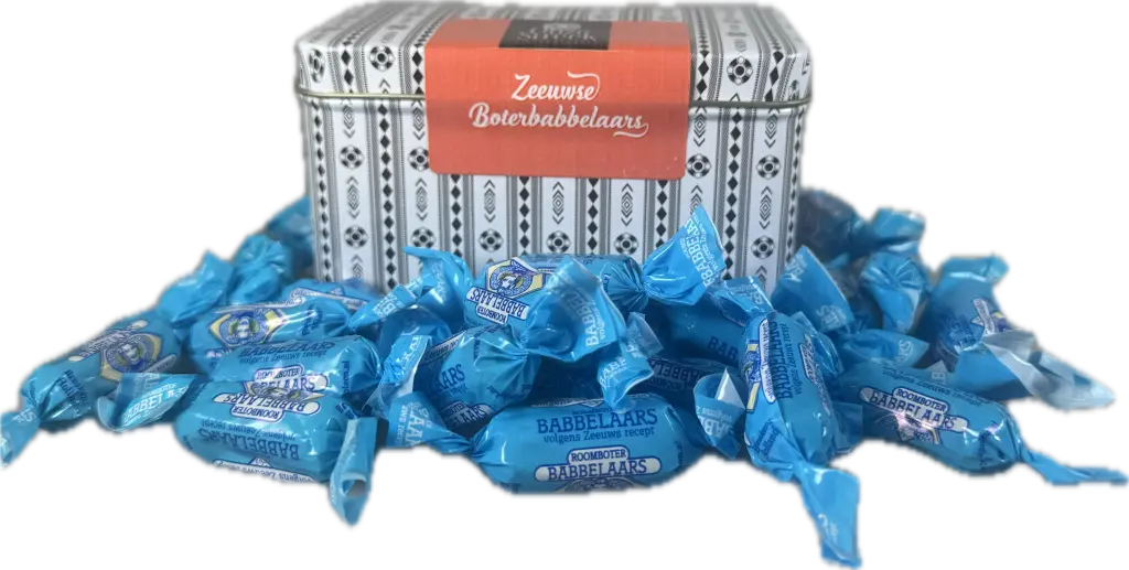In dit mooie rechthoekige blik 150 gram van de allerlekkerste Zeeuwse babbelaars. Het gehele blik is in de stijl van het echt Zeeuws schortenbont. Spaar ze allemaal en gebruik ze als mooi voorraadblik voor allerlei doeleinden.